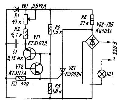 Схема принципиальная Регулятор яркости в торшереПринципиальная схема