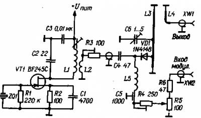 Схема принципиальная Генератор сигнала дмвПри налаживании радиолюбительских конструкций, работающих на частотах выше 1 ГГц (например, в любительском диапазоне 23 см), необходим генератор высокостабильного сигнала. Его нетрудно изготовить, если в распоряжении радиолюбителя имеется кварцевый резонатор на частоту 27...50 МГц.