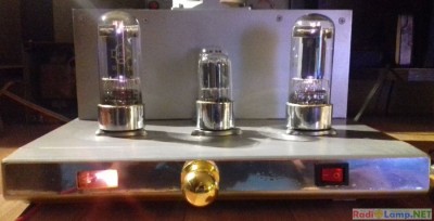 Автор разработки: Сэм Схема принципиальная Ламповый усилитель на лампах на 6Н8С и 6П3СПредлагаю для обзора уже довольно заезженную схему унч на 6п3с. Так случилось, что на работе удалось подобрать на мусорке два совершенно новых, в упаковке трансформатора тпп-258-127/220-50. Пошарив по справочнику удалось выяснить параметры данных трансформаторов, оказалось что они очень даже могли бы подойди в качестве выходного звена в схеме на 6п3с. Было решено собрать эту несложную схемку и проверить свои предположения. Собственно на самой схеме заострять внимание не буду, взял первую попавшуюся на просторах интернета. Рис. 1. Принципиальная схема лампового усилителя на 6н8с и 6п3с. В процессе были изменены номиналы следующих резисторов:R6 заменен на 1,5 ком - МЛТ2 , R4 на 51ком МЛТ1 , R10 на 300 ом из двух штук МЛТ2, R9 на 200 ом МЛТ2, резисторы R3, R8, C9, C7, C2 вообще исключены из схемы. Напряжение питания было снижено до 270 Вольт - совершенно ни к чему вваливать больше трехсот, лучше от этого параметры не станут, только лампы портить. Это что касаемо самой схемы в целом. Как видно на фото ламп в конечном итоге получилось четыре. Поскольку двухламповый вариант имеет недостаточное усиление, то решено было добавить точно такой же каскад как на 6н8с ,только лампа мною была взята 6н9с, еще одной 6н8с не нашлось. Сделано это было для того что бы удобнее было слушать ну скажем то же радио с мобильного телефона или просто mp3, как известно подавляющее большинство телефонов имеют весьма невысокий уровень выходного сигнала. Если использовать с компьютером, то вполне хватит двухлампового варианта, вернее трех лампового тогда уж.